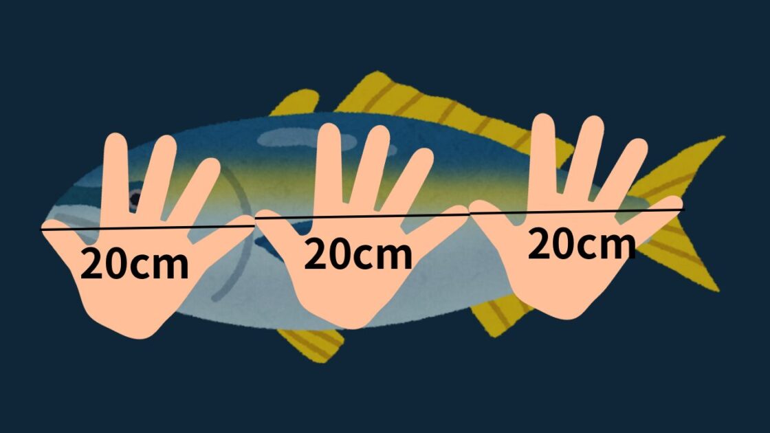 手3つ分の魚のサイズの場合、60cmくらいと